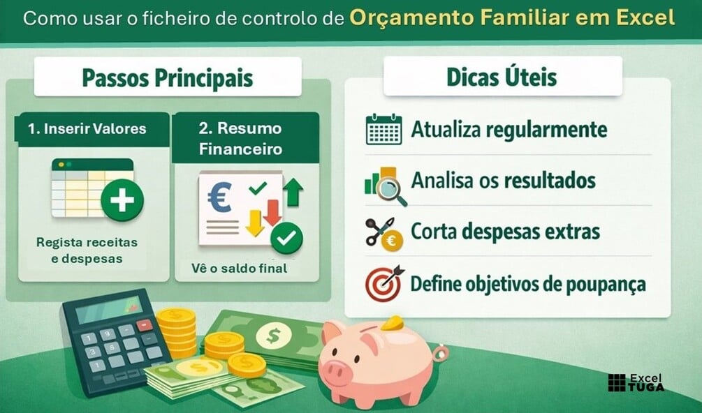 Ficheiro para gerir o Orçamento Familiar em Excel: controlar despesas, rendimentos e poupanças